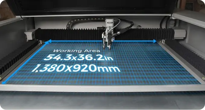 Mit unserer modernen Lasertechnik (CO₂ und Faser) bearbeiten wir Materialien auf einer Arbeitsfläche von bis zu 1380 × 920 mm.